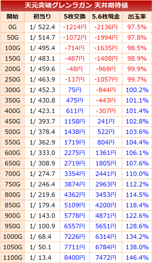 グレンラガン 天井恩恵 期待値 ハイエナ狙い目 やめどき 期待値見える化